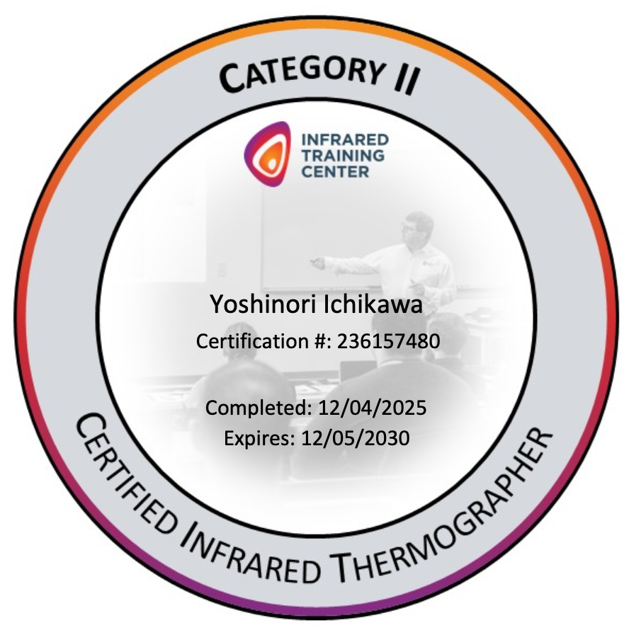 この度、弊社は、赤外線サーモグラフィの国際的な専門機関であるInfrared Training Center (ITC) のレベル2認定を取得いたしました。 ITC:国際規格 ISO18436-7 サーモグラファーの国際 […]